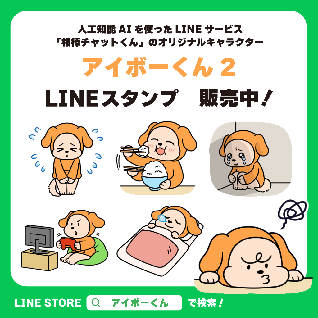 LINEスタンプ「アイボーくん2」 人工知能AIを使ったLINEサービスの「相棒チャットくん」のオリジナルキャラクター、アイボーくんのLINEスタンプを制作しました。 「アイボーくん2」の販売ページへ ↓「相棒チャットくん」を使ってみる↓ page.line.me相棒チャットくん | LINE Official Accounthttps://page.line.me/926rtjvr?oat__id=2490193&openQrModal=true ↓サービス詳細↓ (AI)相棒くん(AI)相棒チャットくん | (AI)相棒くんhttps://aiboukun.com/lp/aibou-chat/(AI)相棒チャットくん 人工知能AI「アイボーくん」と会話ができちゃう!LINEから音声で話すだけ! 「相棒チャットくん」は大量の自然言語データを学習した人工知能AI「ChatGPT」を搭載しているLINEサービスです。面倒なアカウント登 ↓イラスト関連記事↓ 岡本ゆうき illustration2026.03.02LINEサービス(AI)相棒くんhttps://okamotoyuuki.com/lineサービス(ai)相棒くん工知能AI「ChatGPT」を搭載したLINEサービス、「(AI)相棒チャットくん」のキャラクターデザイン・イラストを担当しました。 https://www.youtube.com/watch?v=f0rs4fYhbmI&list=TLGGkm-8K2TXV6AxNjA2MjAyMwアニメーション:RF FILM様 制作ツール:clipstudio、Illustrator 2023年8月22日 投稿先 全記事一覧, 制作実績, LINEスタンプ, シンプルタッチ ← 過去の投稿へ 次の投稿へ → コメントを残す コメントをキャンセルメールアドレスが公開されることはありません。 ※ が付いている欄は必須項目ですコメント ※ 名前 ※ メール ※ サイト 次回のコメントで使用するためブラウザーに自分の名前、メールアドレス、サイトを保存する。 上に表示された文字を入力してください。 Δ